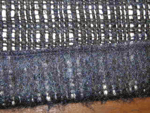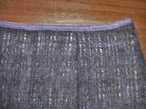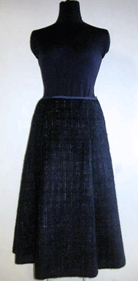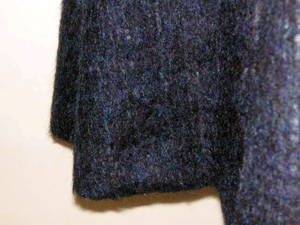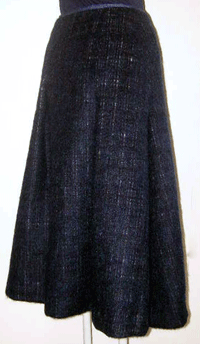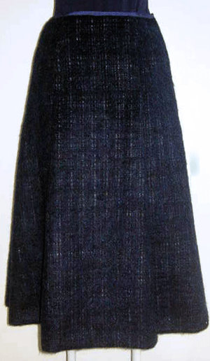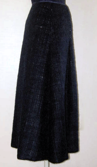 :暖かで柔らかな毛足の有るシャギー布でスカートを仕立てました。少し厚みは有りますが軽い仕上がりです。毛足の有る布のスカートは珍しいと思いますが、寒い冬には短めの上着にこんな暖かなスカートも素敵です。