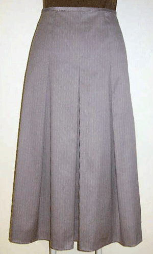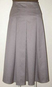 :中心に向かったソフトプリーツが左右1本ずつと中心にboxプリーツの入った、たっぷりとした布の表情が美しいスカートです。