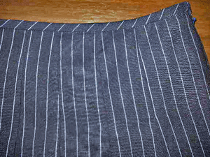 細い糸を使用した上品なリネンの布をロングタックスカートに仕立てました。マニシュなストライプの布が大好きで素敵なストライプを見付けると必ずコレクションに加えたくなります。今回の布の特徴はライトブルーのラインです。このブルーの色合いがネービーに合ってとても洒落ています。一度水通ししてから仕立てましたのでリネンの自然な表情がでています。上質なリネンは夏にとても着心地が良くこれからのシーズンにピッッタリです。どうぞ天然の素材をお楽しみ下さい。夏用のサラッとしたキュプラの裏付きですので、とても心地良くご利用いただけます。
