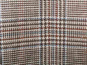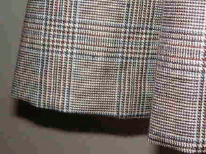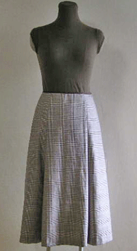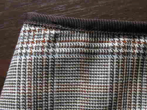 :シルク/コットンのしなやかな風合いが上品なグレンチェックのスカートです。オフホワイトとダークブラウンにマロンとブルーのラインの配色が素敵なグレンチェックで、Italy製の布です。ベーシックな柄に微妙な配色としなやかな素材感が魅力的なSkrtに仕上がりました。