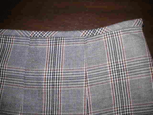 1本、後ろに3本入っていて、前後共右高のプリーツで脇のプリーツは前高です。途中まで中縫いしています。