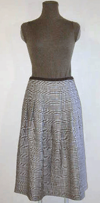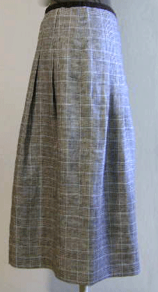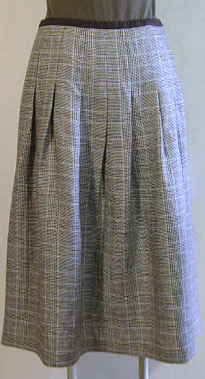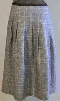 :オフホワイトとダークブラウンの配色がクシックな印象のリネンのグレンチェックはスカイブルーのラインがとても素敵です。マニッシュな雰囲気がとても気に入っています。フェイクスウェードのウエストベルトがアクセントです。グレンチェックはイタリア製の布です。