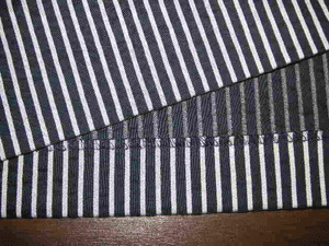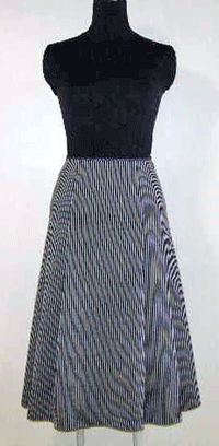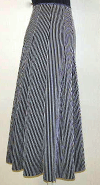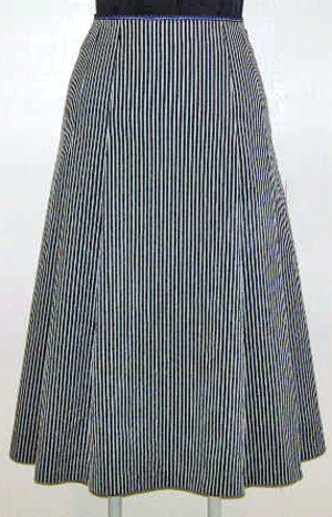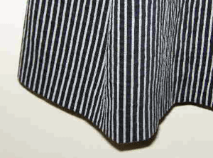 :爽やかな印象の濃紺と白のレジメンタルストライプのソフトプリーツスカート。横糸にストレッチ糸を使用しているので、着心地にフィット感があります。プリーツの数を増やしより動きの有る表情のスカートに仕上がりました。