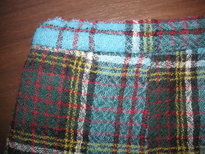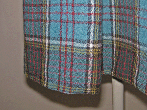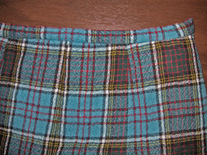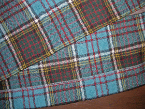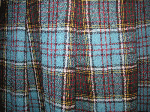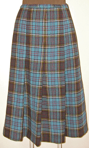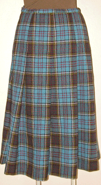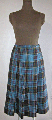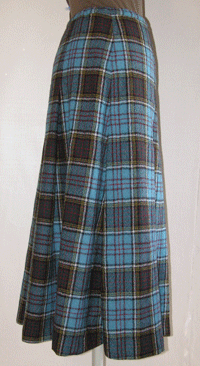 ターコイズブルーが印象的な、色鮮やかなタータンチェックのスカートです。撚りの強い糸を使用したウールガーゼは、軽やかで表情豊かな布です。柔らかな風合いがソフトプリーツに良く合います。タータンチェックの素敵な配色をお楽しみ頂けるスカートです。