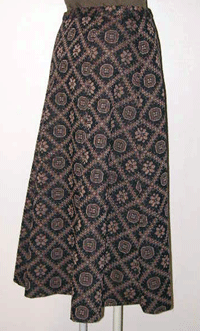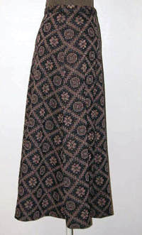 民族調の柄だけれどとてもモダンにも思える綿のジャガード布のソフトプリーツのスカートです。ウイージャと言う恵比寿にあるエスニックなものばかり扱っている専門店で以前購入した布です。とても繊細な糸使いのジャガードです。裏側にジャガードの糸がそのまま残された仕上げなので、ヘム幅を広めに作りました。残念ながら何処の国のものか覚えていませんが、とても雰囲気の有るスカートに仕上がりました。