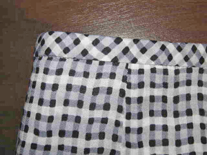 : ウエスト端は共布バイアステープでくるんだスッキリした仕上がりです。