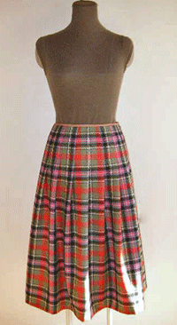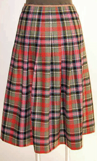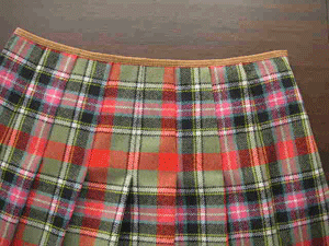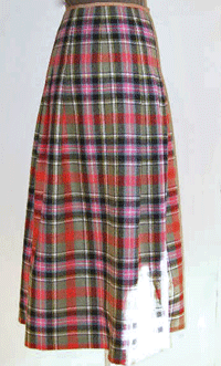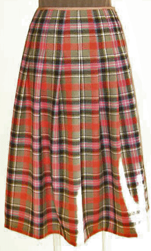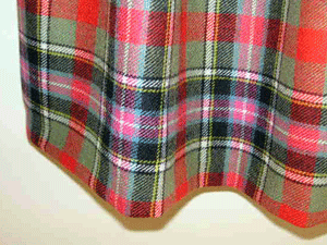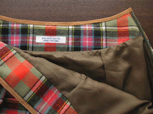 カーキベースのタータンチェックは、とても暖かみの有るオレンジレッドの配色に加えピンクとブルーのラインが絶妙なバランスでとても素敵です。一目で奇麗!と思いましたが、眺めていると、益々配色の素晴らしさに魅了され、コレクションに加えました。暖かみの有る柔らかな風合いのウールです。英国製の本格的なタータンチェックを使用したタックスカートは、寒い冬の日にも元気をくれそうです。