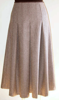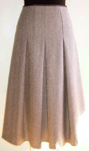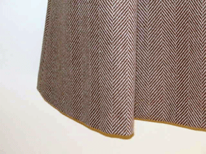 マロンブラウンとベージュの配色と大きめな柄が素敵なヘリンボーンの布でソフトプリーツのSkirtを仕立てました。しなやかでいて少し厚みも有るので、これからのシーズンに活躍しそうなSkirtです。ナチュラルカラーなので、優雅なフレアーを感じる長めの丈にしました。イタリア製の布を使用しています。