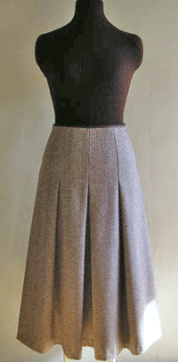 :中心に向かったソフトプリーツが左右1本ずつと中心にboxプリーツの入った、たっぷりとした布の表情が美しいスカートです。