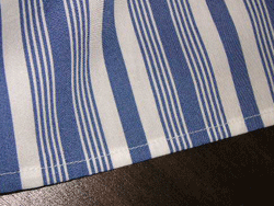 :トリコロールのテープのブルーがぴったり合ったので、表に出る部分は2つ折にして細くしました。ちょっと見える赤がおしゃれです。
