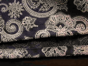 :シルク/コットンのしなやかなグログランにレースのように繊細な柄のアラベスク模様が美しいプリント(Italy製-1987)