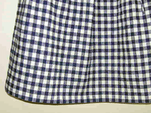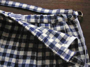 :リネンに起毛加工した布ですので、布の厚みがあり温かみが有ります。肌触りが優しくて、扱っているうちにより愛着の出る味の有る風合いの布ですのでより大好きになりました。ギンガムは昔から大好きな柄の一つですが起毛リネンは新しい発見。とても気に入っております。柄の大きさは1cm幅程で、この画像はほぼ実物大です。