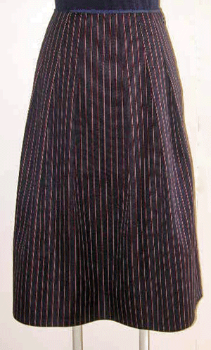 :この作品はコットンのストライプ先染めを使用したスカートです。