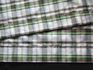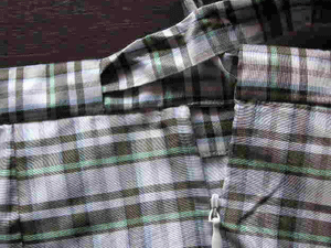 : オリーブグリーン、にミントグリーン、スカイブルーのナチュラルな色合いのチェックが素敵なシルクタフタのタックSkirtです。