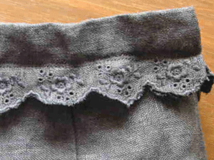 :ベルトにスカラップ刺繍部分を使いま
