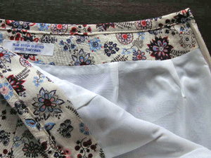 :この作品はコットンのプリント布(裏地=キュプラ)を使用した