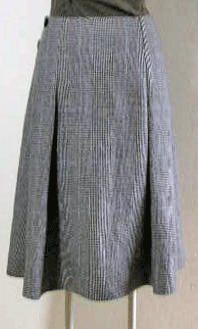 キルトスカートを意識したラップスカートです。前から後ろに向けてソフトプリーツをたたんであります。タブベルトを2個付け、重なり分もたっぷりあり、着心地に安心感があります。