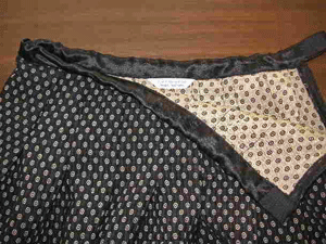 :ウエストベルト布のサテンはしっかりした厚手のサテンですがシルクですのでしなやかさが有り、きれいな仕上がりです。