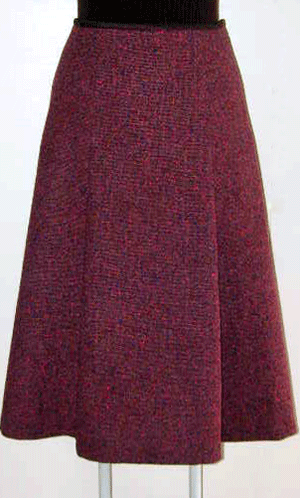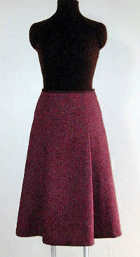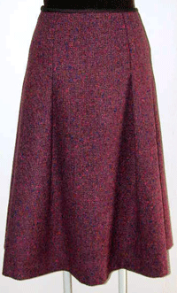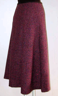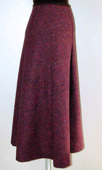 :topブラウンとボルドーの糸で織られたざっくりした本格的なツウィードのスカートです。ネービーとレッドのネップが素敵な表情です。ウエスト端と見返しにはダークブラウンのフェイクスウェードの布を使用してスッキリ仕上げています。ネップツウィードの暖かで表情豊かな素材感をお楽しみ下さいませ。裏地付きの仕様です。