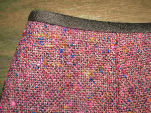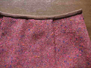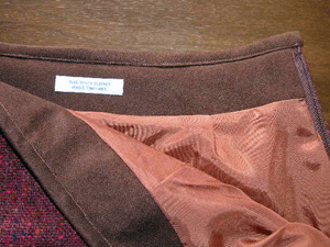 : ウエスト端と見返しには焦げ茶のフェイクスウェード布を使用してスッキリした仕上がりです。
