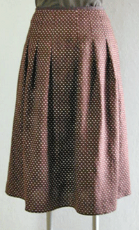 :お洗濯後形を整えるようにして脱水を軽くかけ、しわをたたくようにしながらスカートハンガーなどで、乾かしますが、乾ききらない内に、アイロンで仕上げるときれいに仕上がります。(表からのアイロンには、当て布をお使い下さい!布にアタリがでてしまうので。)