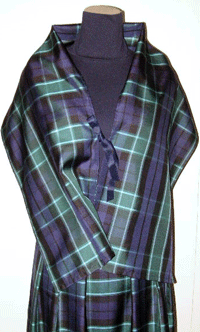 :片方にサテンリボン、反対側にリボン通しを付けてありますので、リボンを利用したスカーフの形をお楽しみ頂けます。